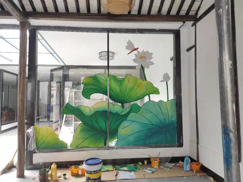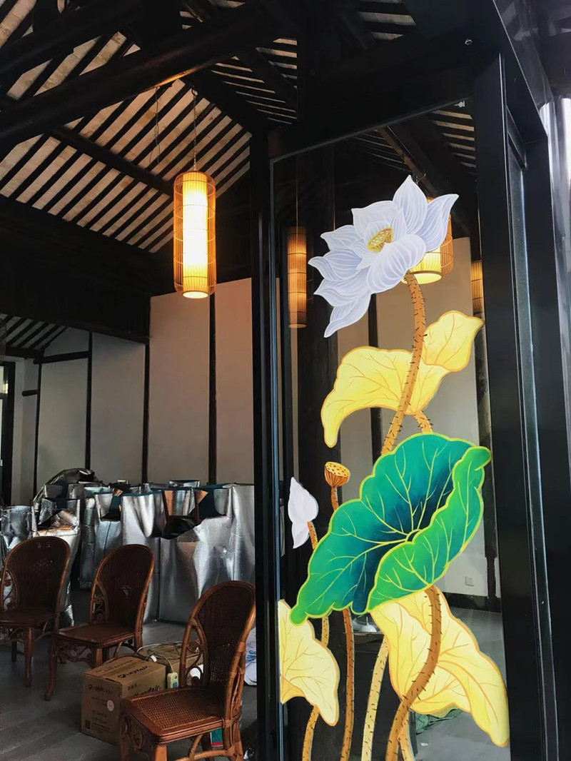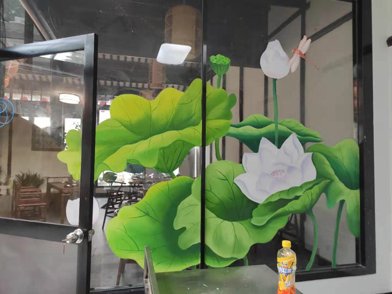 牛塘饭店玻璃画